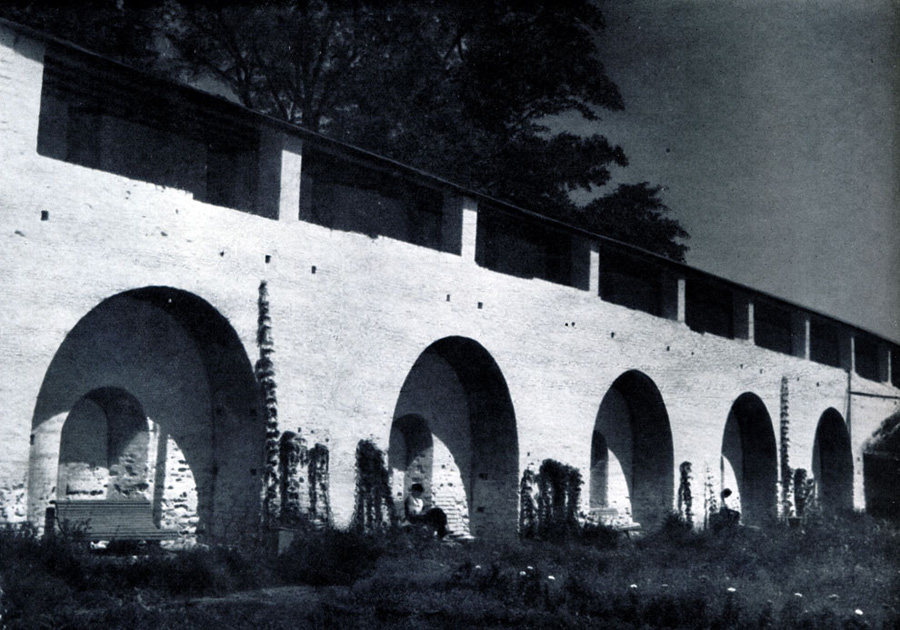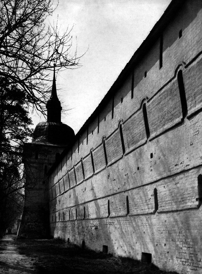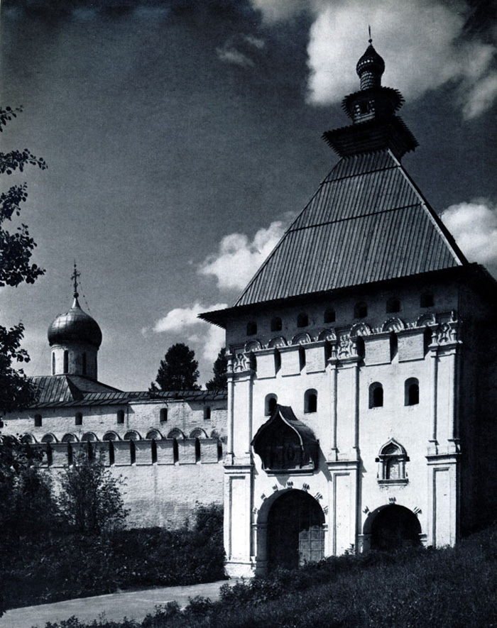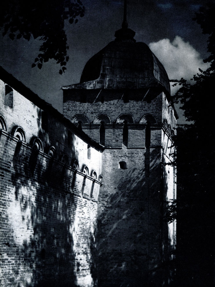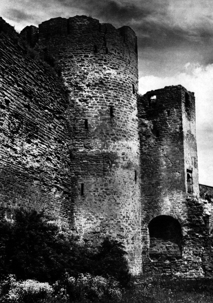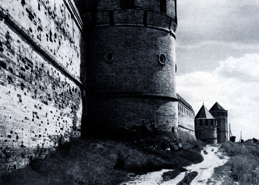 Конечно, не все оборонительные сооружения древней Руси сохранились до наших дней. Большинство из них уже давным-давно исчезло с лица земли. Однако те, которые остались, являются великолепными памятниками архитектуры. Своей суровой лаконичностью нас поражают, например, каменные твердыни в Изборске — верном порубежном страже вольного Пскова, названном врагами за неприступность «железным городом», а также в Порхове и Копорье — пограничных укрепленных пригородах «Господина Великого Новгорода», не раз обрекавшихся неприятелем на разрушение. Могучей силой и вечной нерушимостью веет от стен и башен величественного Кремля Москвы — крепостного первенца молодого Русского государства, вступившего при Иване III на международную арену. Грандиозна и крайне своеобразна Смоленская крепость, которую русский народ окрестил «непобедимым укреплением своего отечества». Словно сказочные города вырастают из земли стены и башни Соловецкого, Троице-Сергиева и Кирилло-Белозерского монастырей — «великих царских крепостей», соединяющих в себе техническое совершенство исполнения и изумительную, нигде не повторимую красоту.