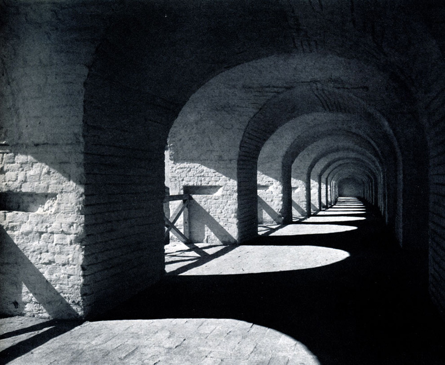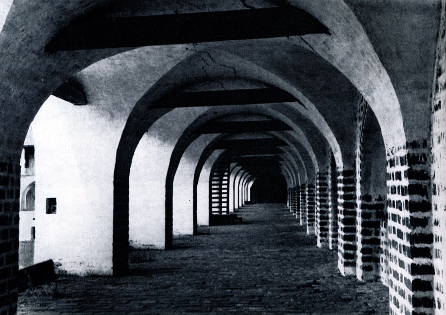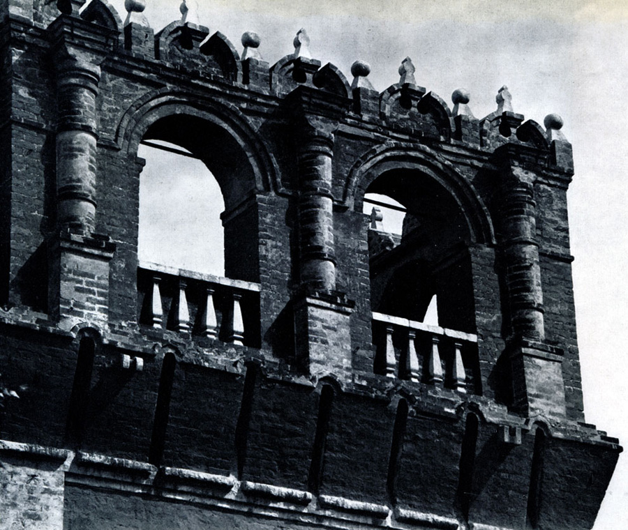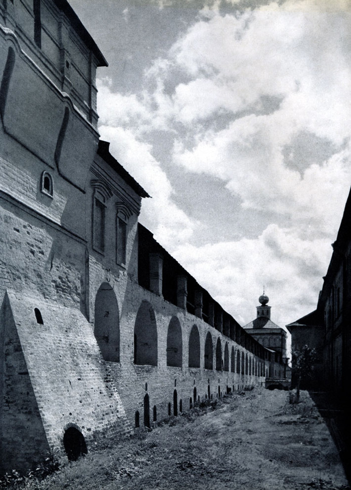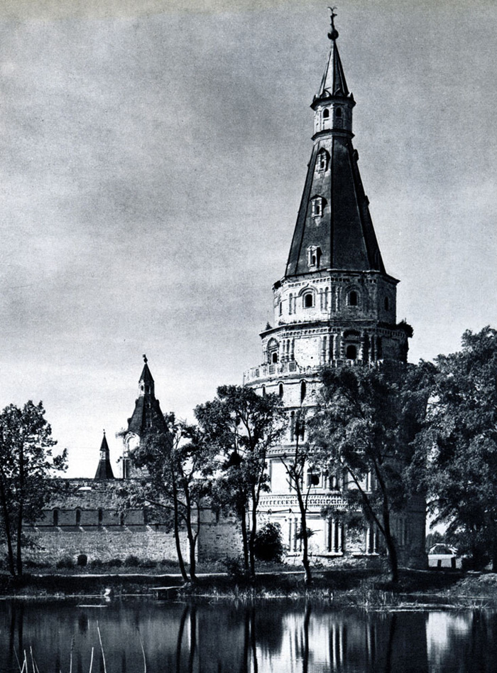 Конечно, не все оборонительные сооружения древней Руси сохранились до наших дней. Большинство из них уже давным-давно исчезло с лица земли. Однако те, которые остались, являются великолепными памятниками архитектуры. Своей суровой лаконичностью нас поражают, например, каменные твердыни в Изборске — верном порубежном страже вольного Пскова, названном врагами за неприступность «железным городом», а также в Порхове и Копорье — пограничных укрепленных пригородах «Господина Великого Новгорода», не раз обрекавшихся неприятелем на разрушение. Могучей силой и вечной нерушимостью веет от стен и башен величественного Кремля Москвы — крепостного первенца молодого Русского государства, вступившего при Иване III на международную арену. Грандиозна и крайне своеобразна Смоленская крепость, которую русский народ окрестил «непобедимым укреплением своего отечества». Словно сказочные города вырастают из земли стены и башни Соловецкого, Троице-Сергиева и Кирилло-Белозерского монастырей — «великих царских крепостей», соединяющих в себе техническое совершенство исполнения и изумительную, нигде не повторимую красоту.