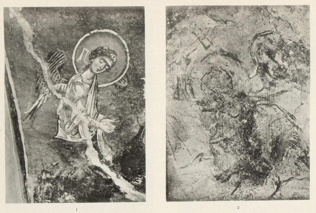 Таблица XLVII. 1. Остатки композиции в южном коробовом своде 2. Фрагмент композиции Тайной вечери в коробовом своде