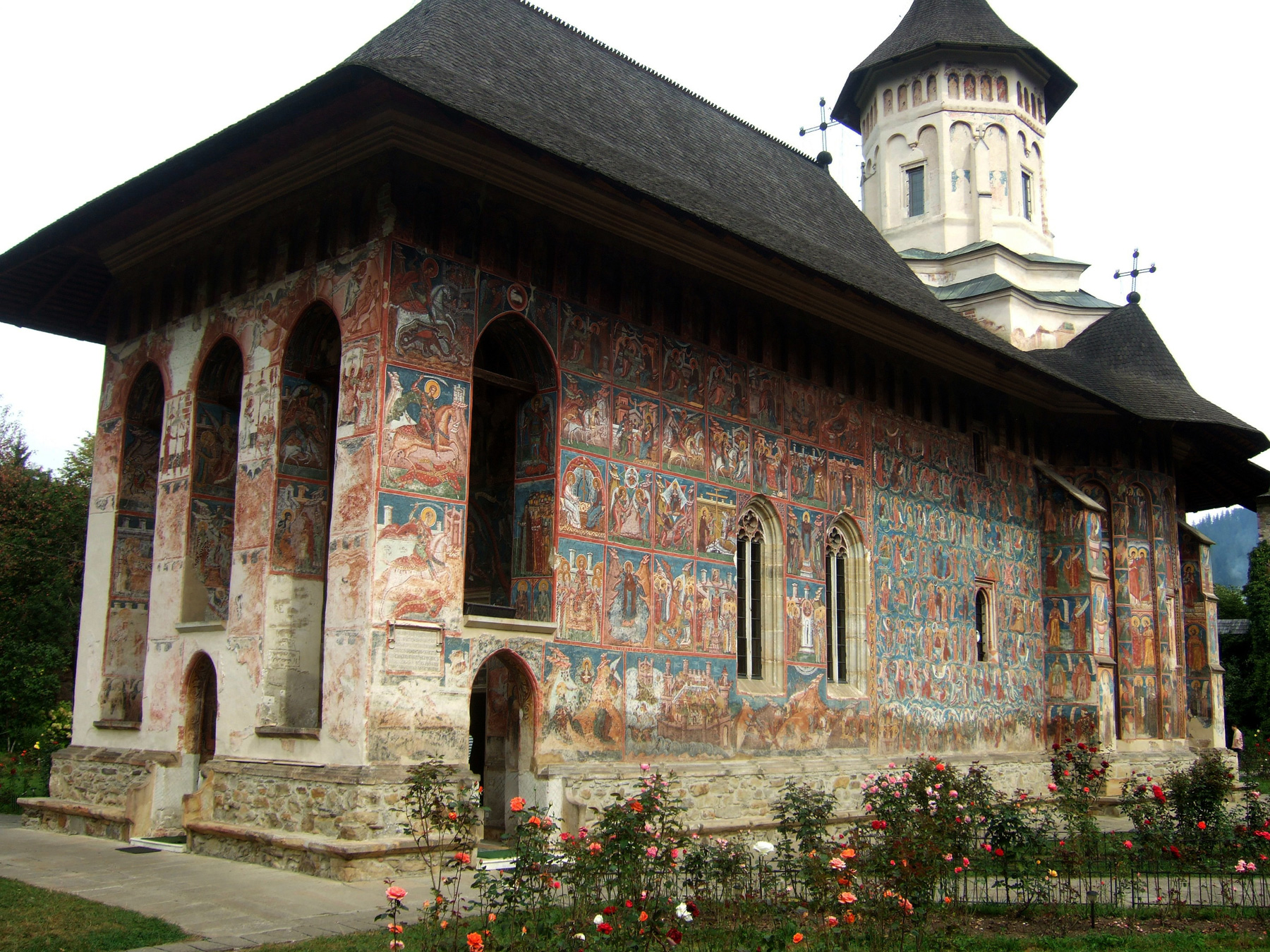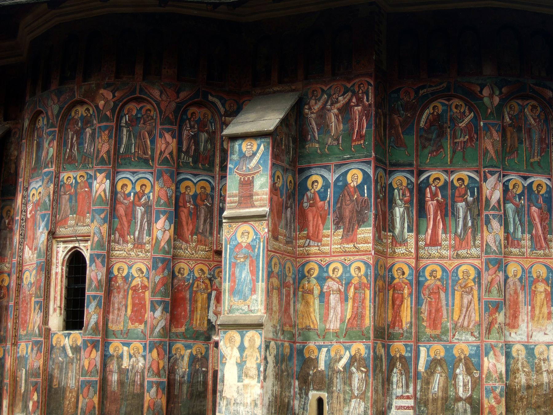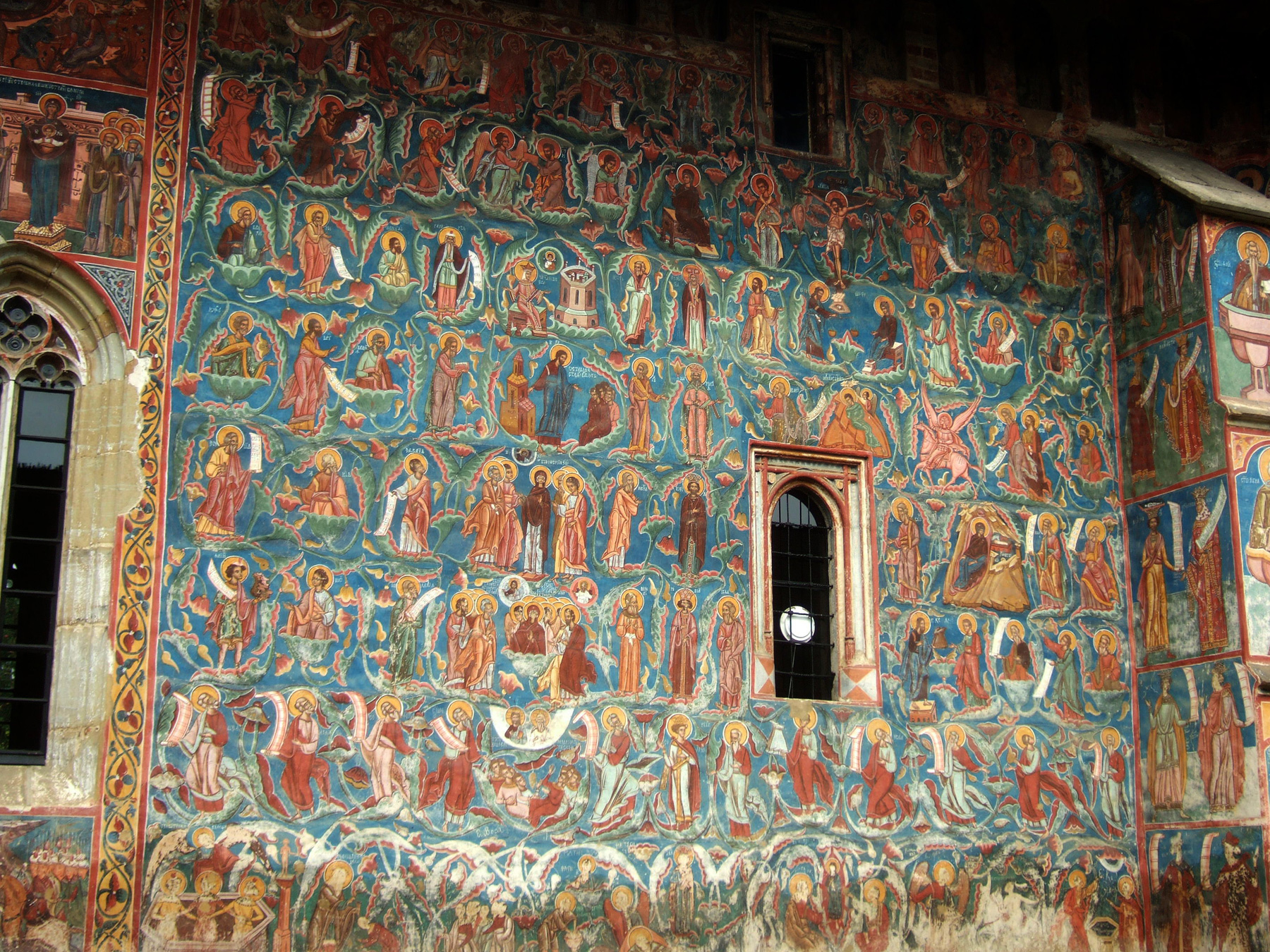 Здесь, как и в церкви Хумора, фрески фасадов сохранились почти полностью.
