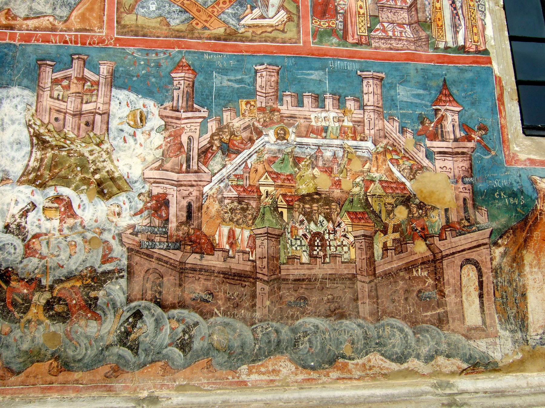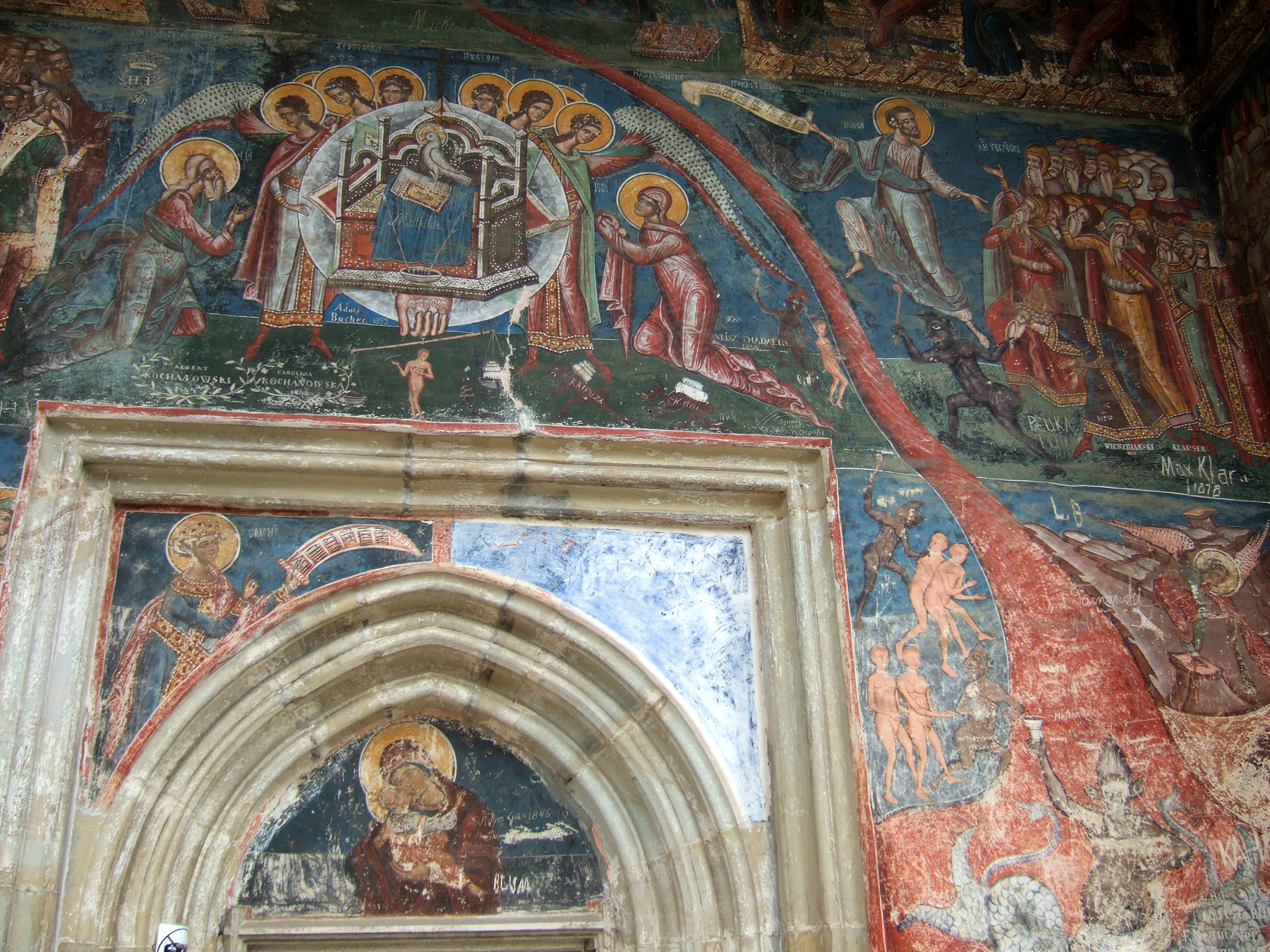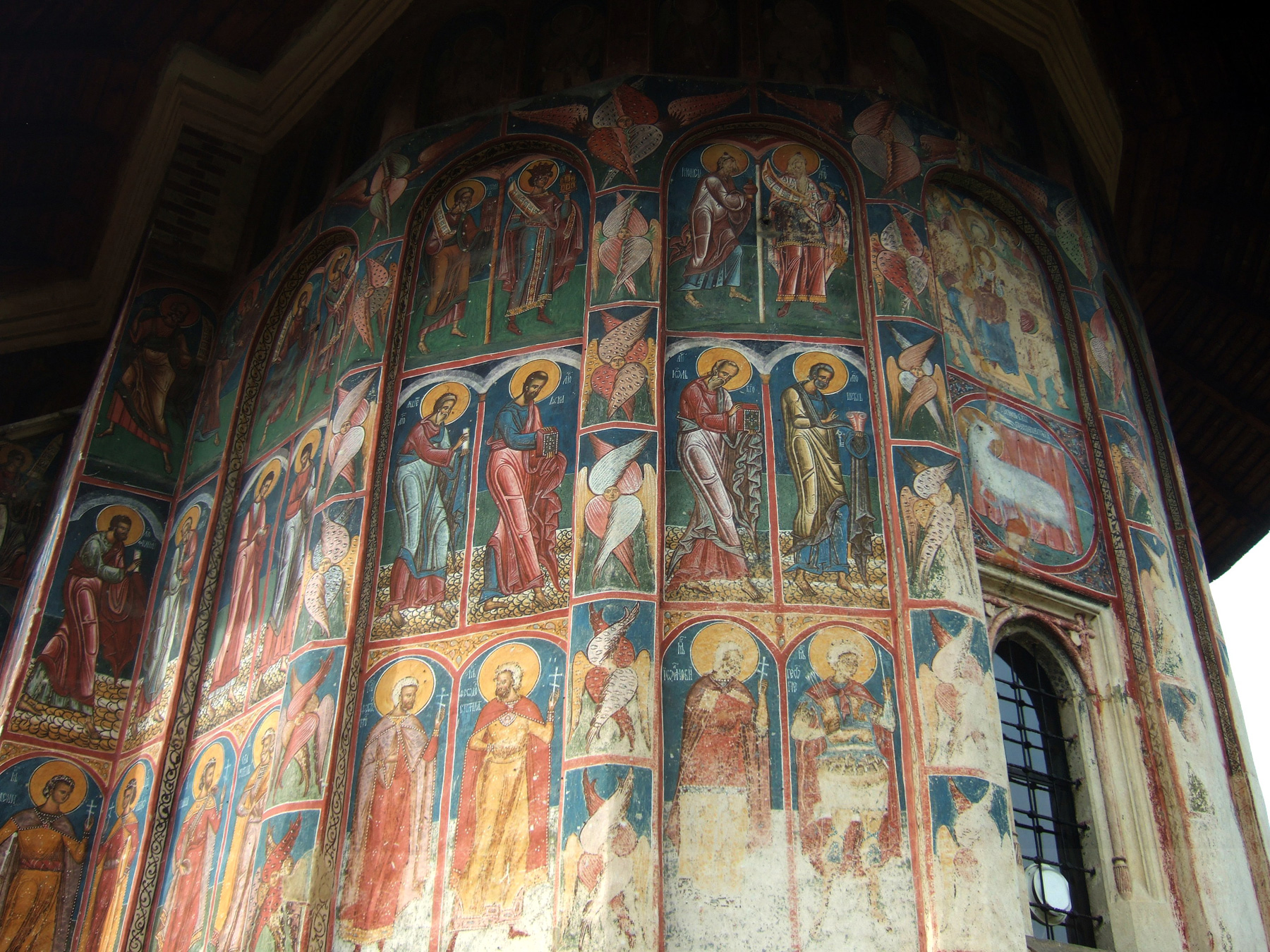 Здесь, как и в церкви Хумора, фрески фасадов сохранились почти полностью.
